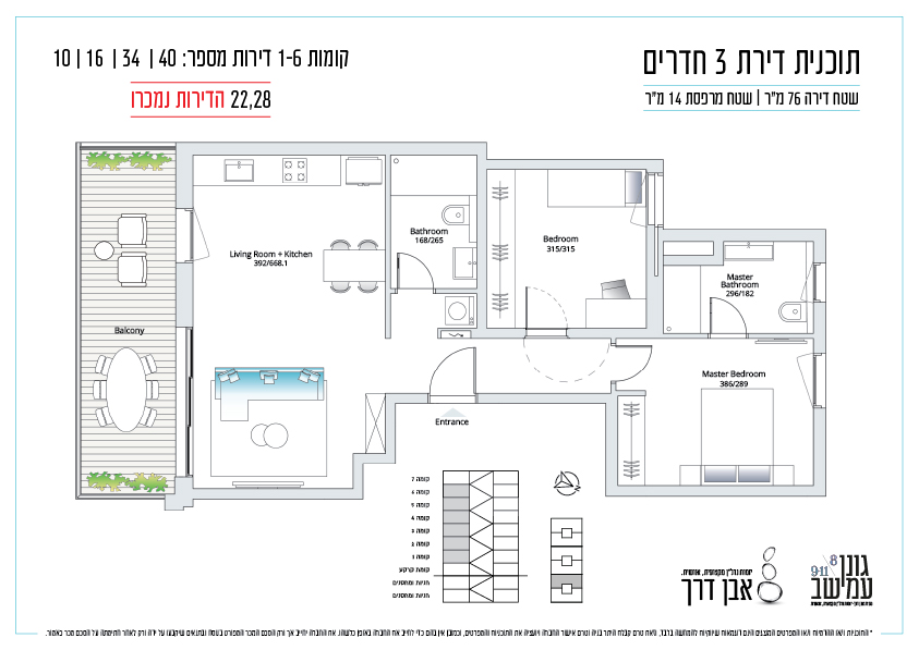 עיצובו של הפרויקט בא לידי ביטוי בכל היבט, מהמעטפת החיצונית של הבניין ועד לאחרון הפרטים בפנים הדירות שתמהילן מגוון להפליא, לכל דירה חנייה פרטית קונבנציונלית (תת קרקעית), מחסן ומפרט Premium המאפיין את רפרטואר הפרויקטים של חברת אבן דרך.