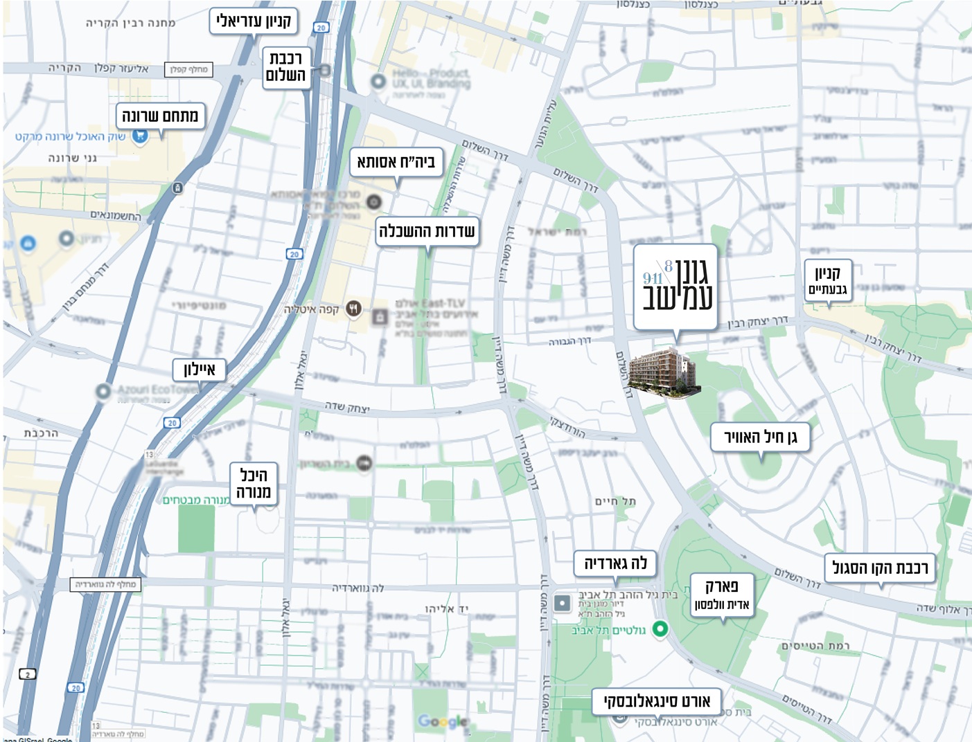 מיקומו המושלם של הפרויקט בשכונת גונן עמישב מציב אותו בלב אזור מתחדש ומבוקש בתל אביב.הסביבה מאופיינת בריבוי פארקים וגינות קהילתיות, שבילי הליכה ואופניים המחברים בין מוקדי השכונה השונים.